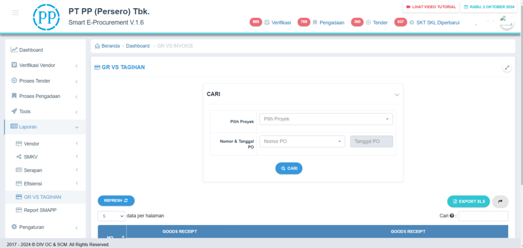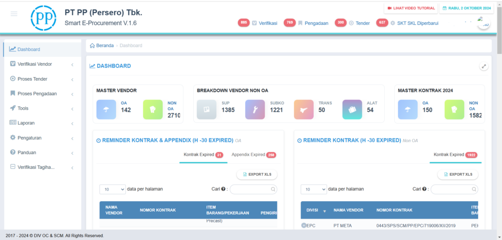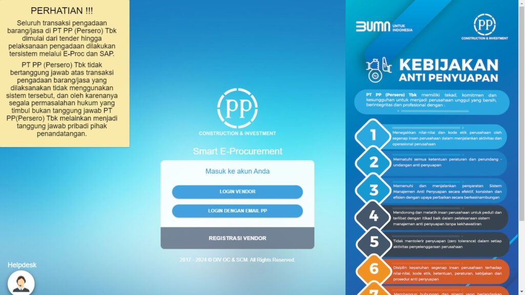 The Eproc PP application for PT PP (Persero) is a digital solution designed to optimize the procurement process for goods and services in this construction and investment company. This system helps PT PP (Persero) in managing the procurement process with transparency, efficiency and high accuracy. The following are the main features and functions of this Eproc application: